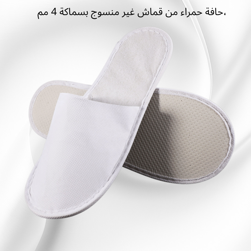 شبشب قماش غير منسوج بسماكة 4 مم، حواف بيضاء أنيقة، تصميم مريح للاستخدام في الفنادق وصالونات المساج، خفيف الوزن وسهل الاستخدام للاستخدام اليومي.