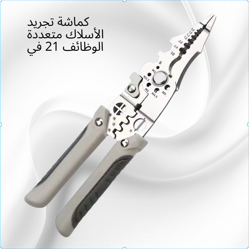 كماشة تجريد الأسلاك متعددة الوظائف 21 في 1، تصميم متين، مواد عالية الجودة، مناسبة لأعمال الكهرباء والصيانة، تدعم تجريد وقص الأسلاك، سهلة الاستخدام، مقبض مريح.